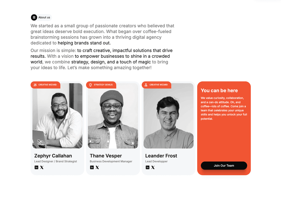 Dans le cadre du projet fictif Agencie, mon objectif était avant tout d'améliorer mes compétences en animation web en utilisant Framer Motion. Pour cela, j’ai choisi de travailler à partir d’un template open source et gratuit, ce qui m’a permis de me concentrer sur la compréhension et la reproduction des animations existantes avant d’explorer des personnalisations plus avancées.