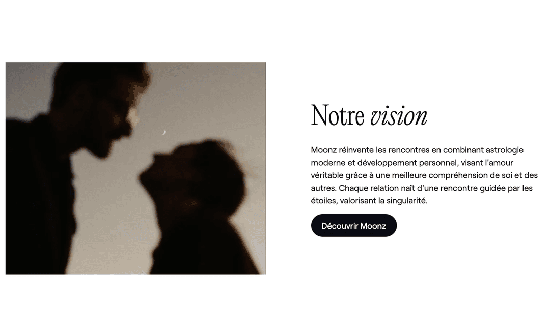 En combinant astrologie, technologie et une nouvelle approche de l'interaction humaine, Moonz ambitionne de redéfinir la manière dont les gens se rencontrent et nouent des relations significatives dans un monde numérique.